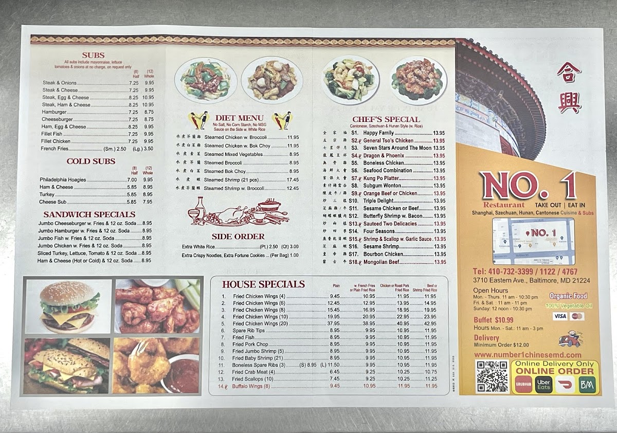 Welcome to Number 1 Chinese, a hidden gem located at 3710 Eastern Ave, Baltimore, MD. Renowned for its delicious, authentic Chinese cuisine, this restaurant delivers a menu that showcases the best of traditional flavors. Diners rave about the hot & sour soup, a perfect balance of spicy and tangy that establishes this dish as a must-try. Noodles here have also garnered acclaim for their delightful texture and flavor, making them a favorite among patrons.